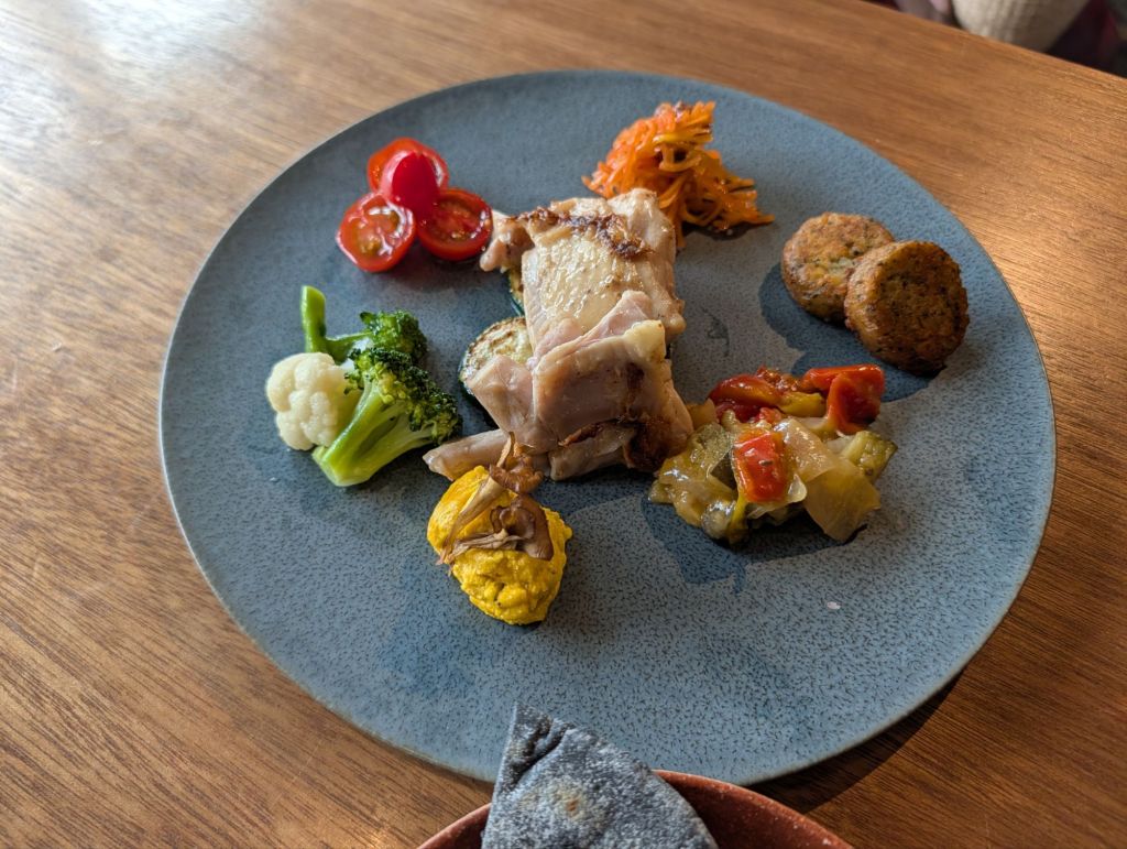 祝日の14時前入店。ランチが滑り込みで利用できたので、デリプレートとカフェラテを頂きました。